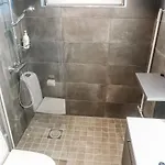 Det finns också TV. I badrummet finns även en separat toalett, ett badkar och en dusch.